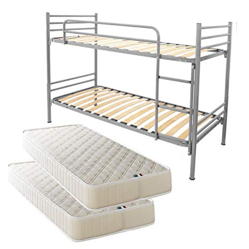 Filoben-com Letto a Castello Argento Rete a doghe Completo di 2 materassi in Offerta Made in Italy