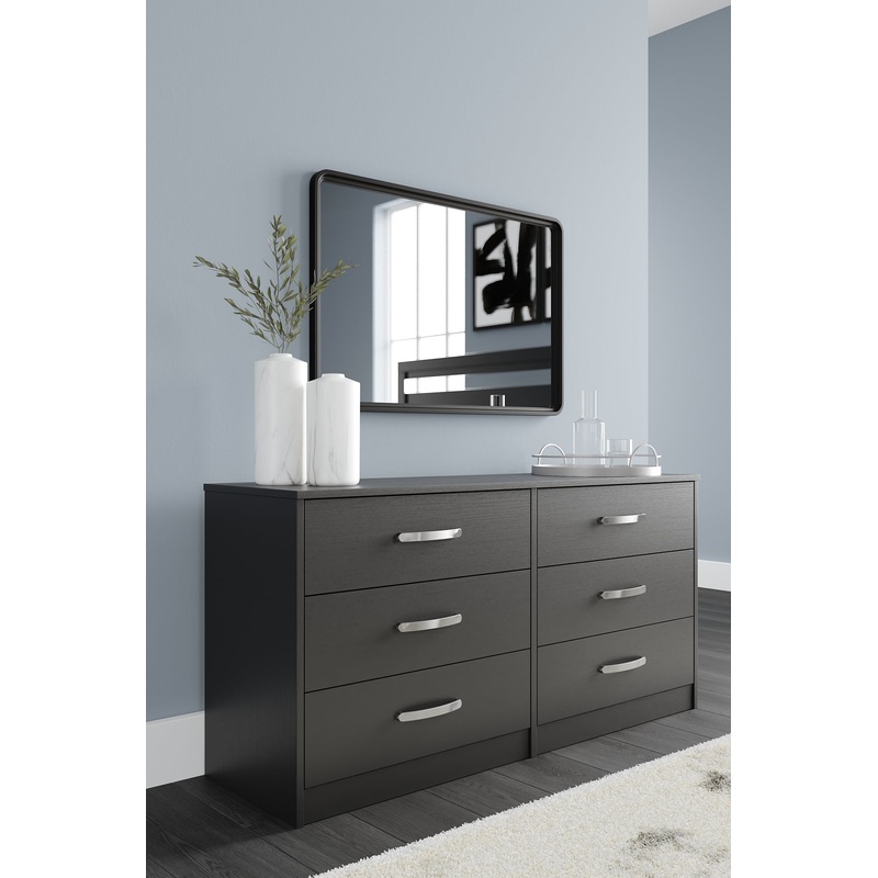 Practical and attractive, this dresser blends seamlessly with modern decor and makes a smart addition to a bedroom. The six full-sized drawers slide easily and can be used to keep your clothes neat and organized. Sleek metal pulls in a brushed nickel-tone finish add to the streamlined aesthetic. Combine with other pieces in the collection to create a room thats smart and stylish.
