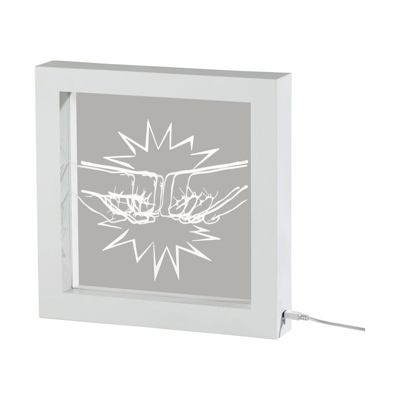 Feel the power with this abstract Fist Bump Video Light Box by Simplee Adesso, which can be wall mounted as eye-catching wall art or can stand free on tables, shelves, nightstands, or counters. Measuring 9 tall by 9.25 wide including a white plastic frame,