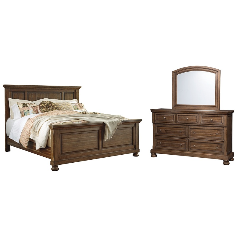 Flynnter California King Panel Bed with Mirrored Dresser