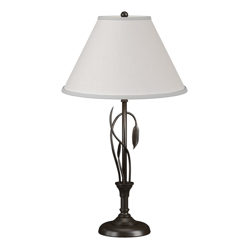 Our table lamp is an example of "sylvan steel." Stems of hand-forged iron sprout from the lamp post, with one gently curved stem culminating in a finely-crafted leaf. Shaped by artisans at our forge here in Vermont, each piece is unique.