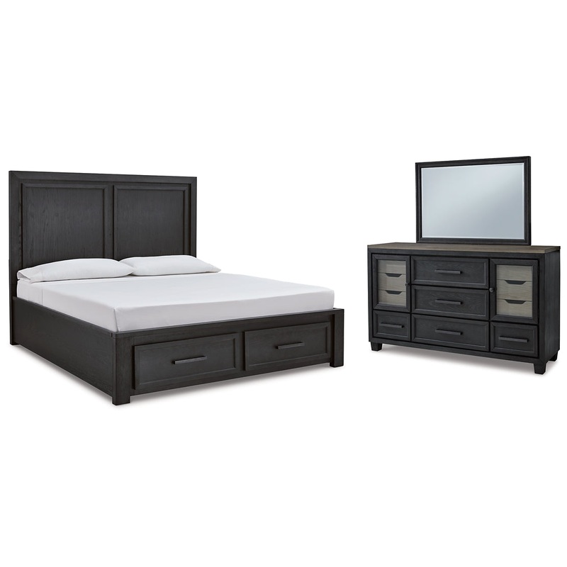Foyland King Panel Storage Bed with Mirrored Dresser