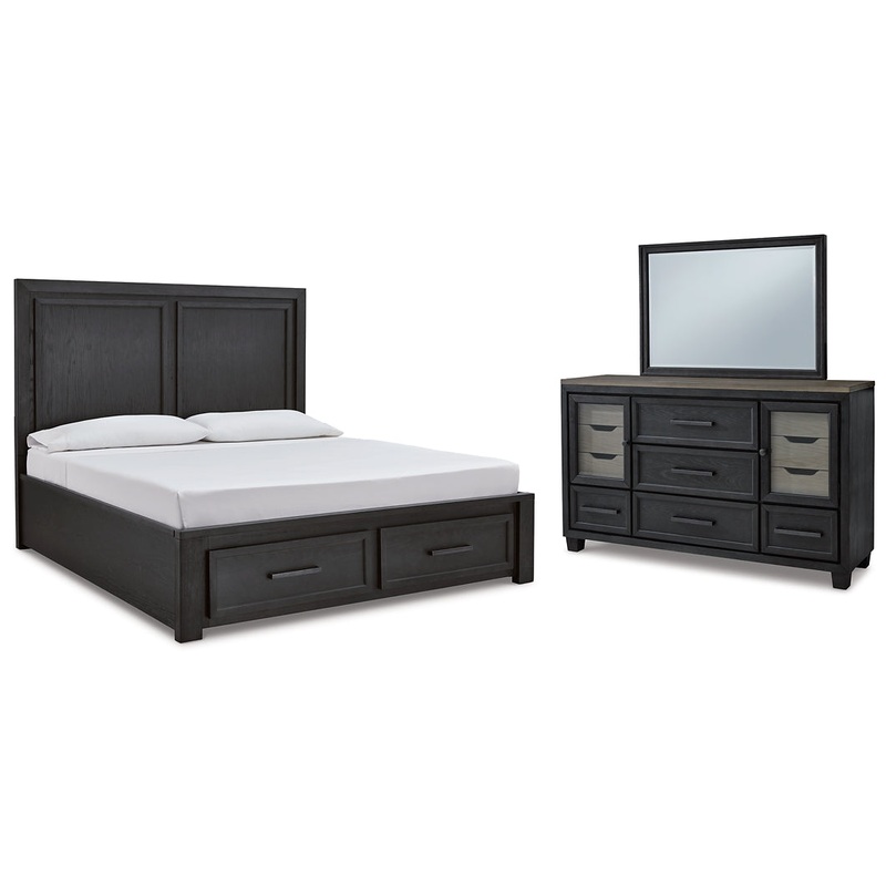 Foyland Queen Panel Storage Bed with Mirrored Dresser
