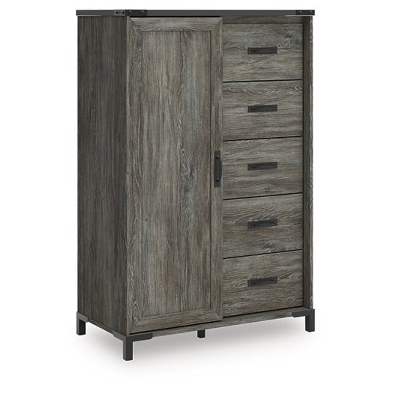 Cool, casual style is for all ages. With this dressing chest, they get the function they need plus the refined design you love. Approachably neutral in a rustic warm gray, its adaptable enough to pair with an assortment of existing colors and room decor. Faux metal detailing on the corners lends an industrial edge. The chest’s smooth-gliding drawers and cabinet space offer storage for clothes, toys and everything in between.