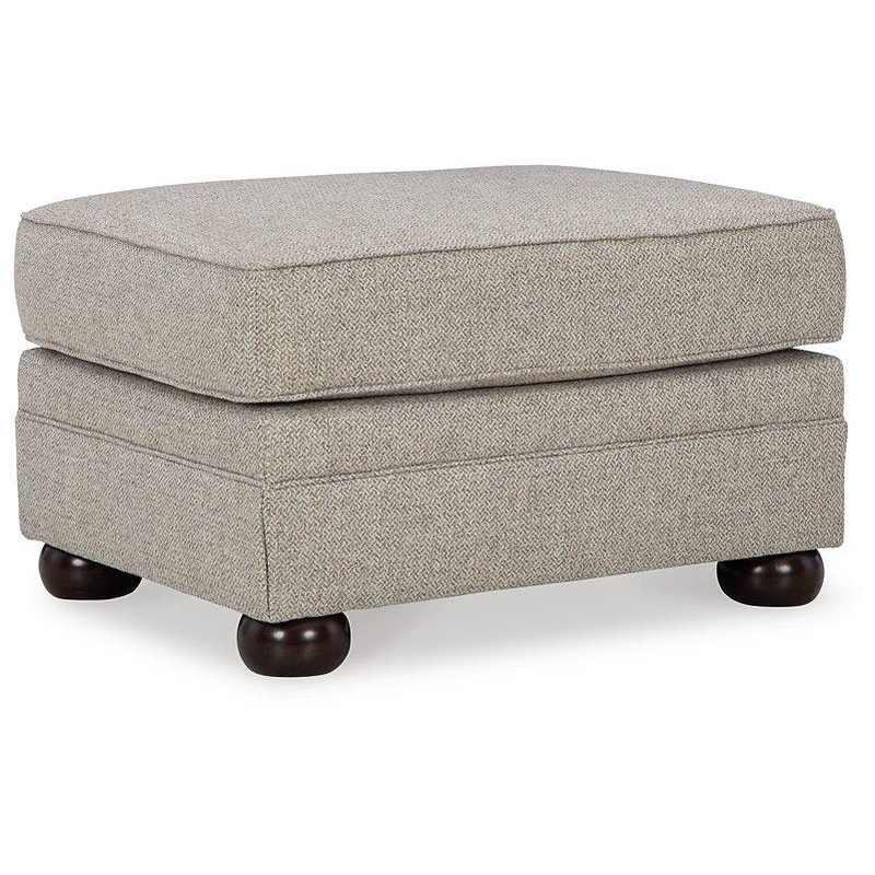 Inspired by the past but rooted firmly in the present, this ottoman complements your transitional seating area. Its versatile upholstery is delightfully detailed for a subtle herringbone effect. Designer touches like bun legs add traditional character. With this ottoman’s reliable style and comfort, all you need to do is kick back and relax.