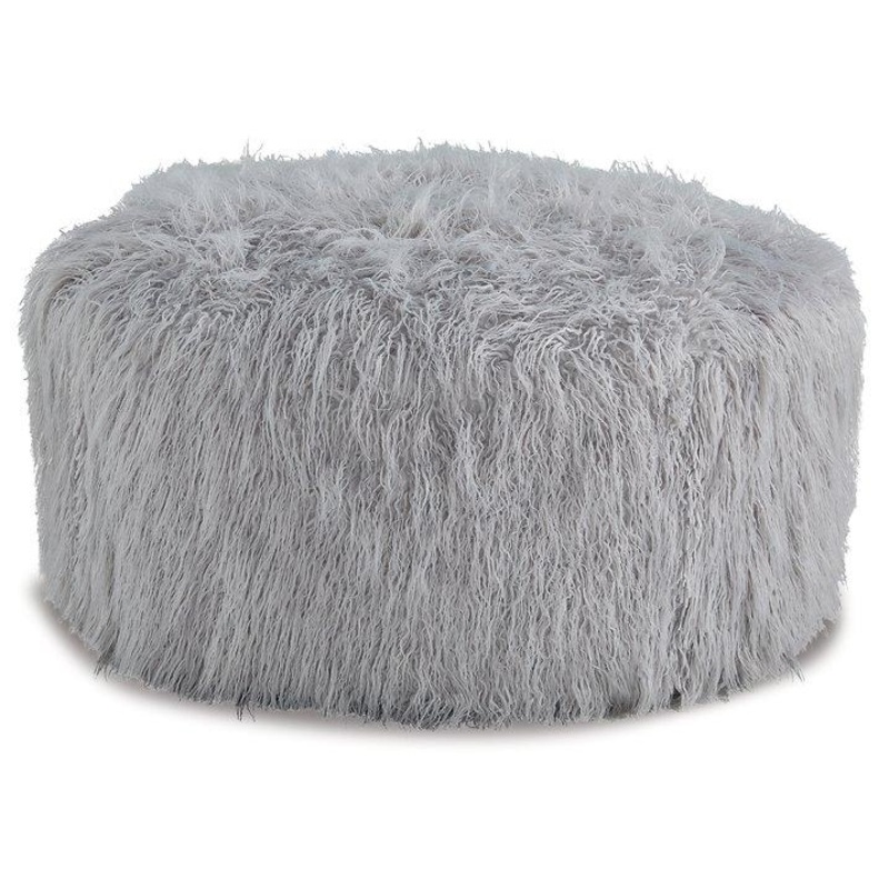 Don't shy away from decadence. Add a bit of bold design to your room with this oversized accent ottoman. The faux fur upholstery has a luxe look, and its casual light gray hue allows this plush piece to make a stylish statement in a variety of spaces.