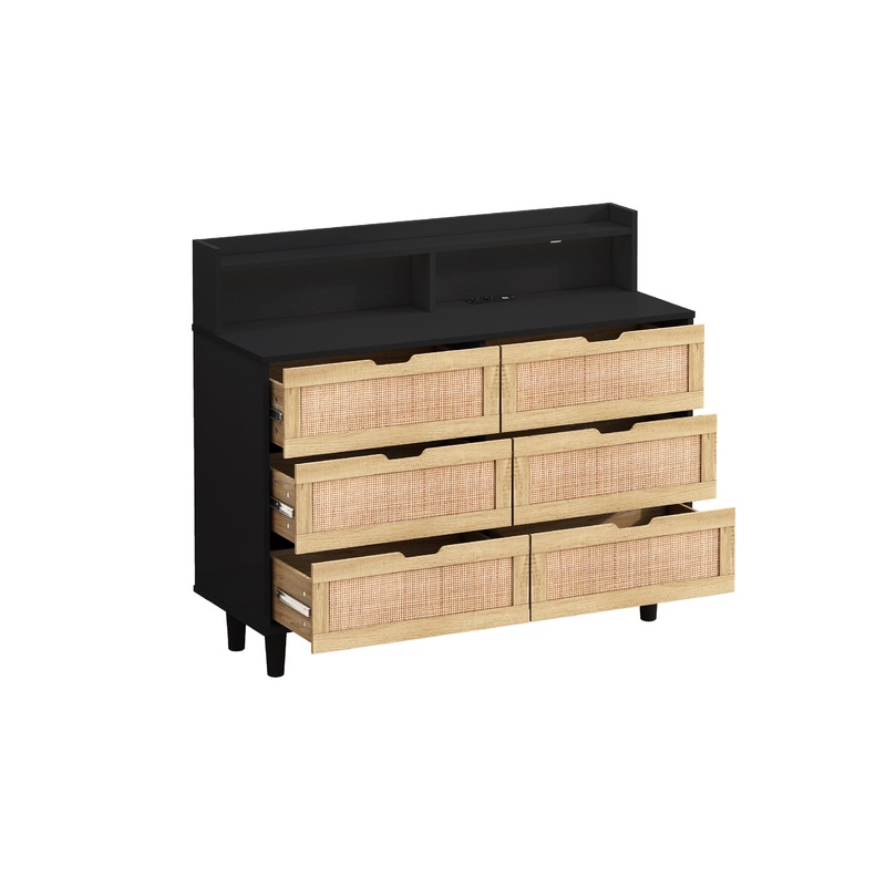 Modern natural rattan:The rattan dresser adopts simple black color and natural rattan drawer design, providing you with a simple and spacious sorting and storage solution.