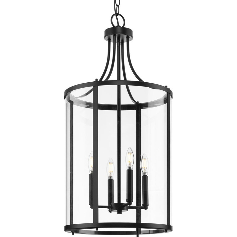 Gilliam Collection Four-Light Matte Black New Traditional Hall and Foyer Pendant, 15 in x 15 in x 30.62 in – Transitional – Pendant Lighting – by Progress Lighting