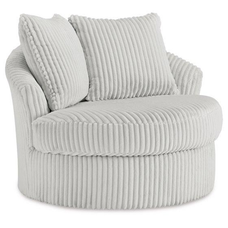 This swivel chair takes style and comfort full circle. Its plush, neutral corduroy upholstery is casually cool and beautifully on trend, while throw pillows elevate the cozy factor. A smooth-gliding 360-degree swivel lets you go with the flow. Come on, you know you want to take it for a spin.