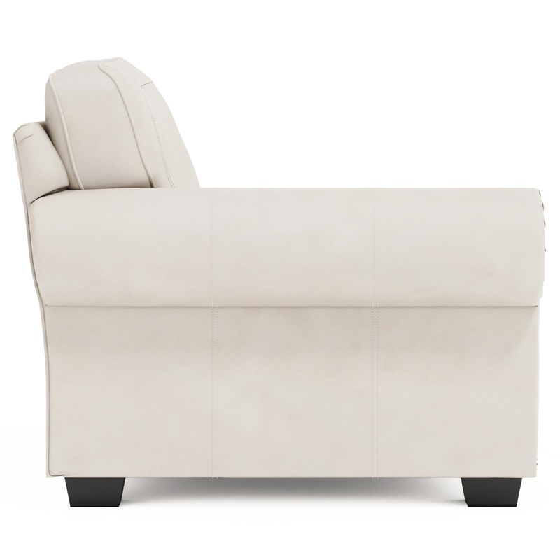 Elegant and sophisticated, the leather Grandview left arm chair features a clean, modern frame and an ultra-comfortable spring down cushion. A rolled arm and nailhead trim bring an air of refinement. Tapered block feet add a contemporary touch.