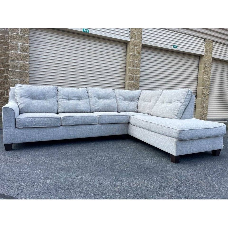 Gray 2pc sectional couch with chaise in like-new conditionRetail price = $1,300Your price = $795 About 2 years old, this couch is in like-new condition with no rips, no stains, no damage and comes from a pet-free, smoke-free home. There are a couple of nic