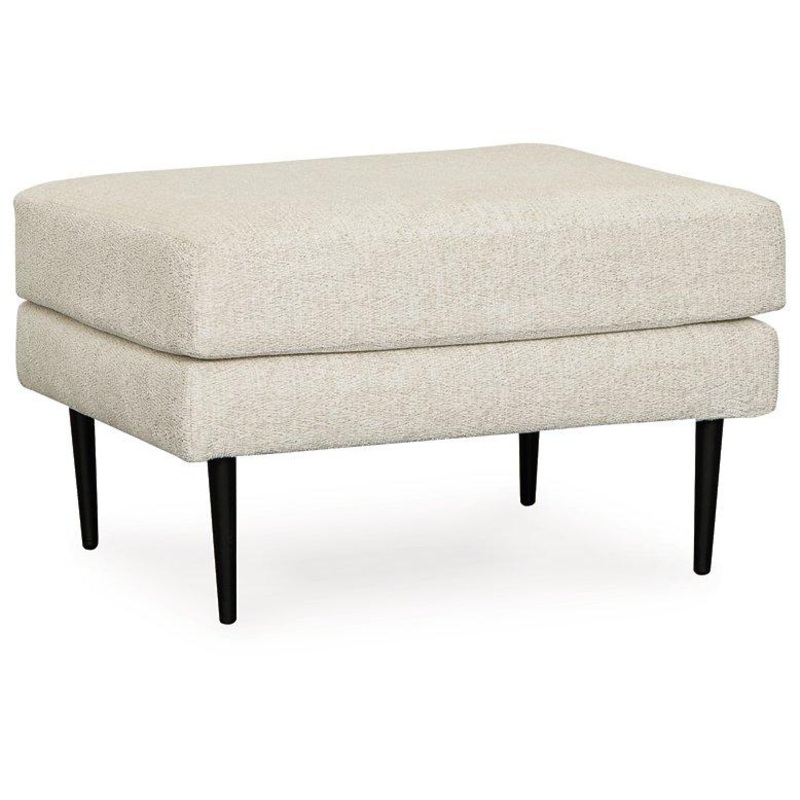 Simple comfort meets modern function in this ottoman. An apt addition to apartments and other small spaces, the slim-profiled companion piece welcomes you with its cozy character. A subtle chevron pattern refreshes the classic neutral hue, elevating the look while still suiting a variety of styles. Black accent legs add a dash of contemporary flair.