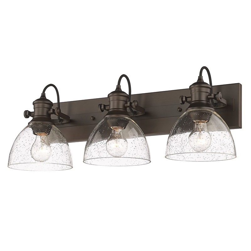 Hines 3-Light Bath Vanity in Rubbed Bronze with Seeded Glass
