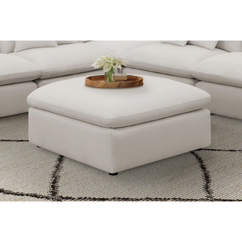 Prop your feet up on the cushioned comfort of this cozy ottoman for the den or living room. Upholstered in linen-like, it’s crafted with a single plush cushioned seat for long-lasting comfort. It also features handsome topstitching. You’ll appreciate the treated fabric that easily repels water and moisture so you can wipe up spills before they soak in. This ottoman is the ideal accent piece to add to your modular sectional.
