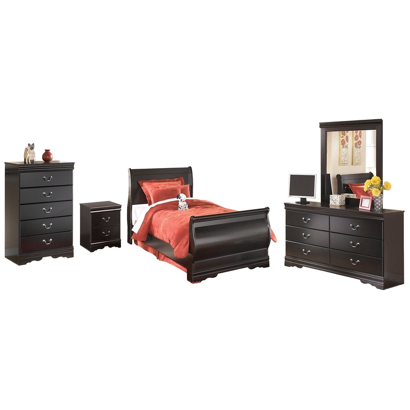 Huey Vineyard Twin Sleigh Bed with Mirrored Dresser, Chest and Nightstand