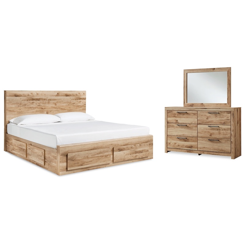 Hyanna Queen Panel Storage Bed with Mirrored Dresser