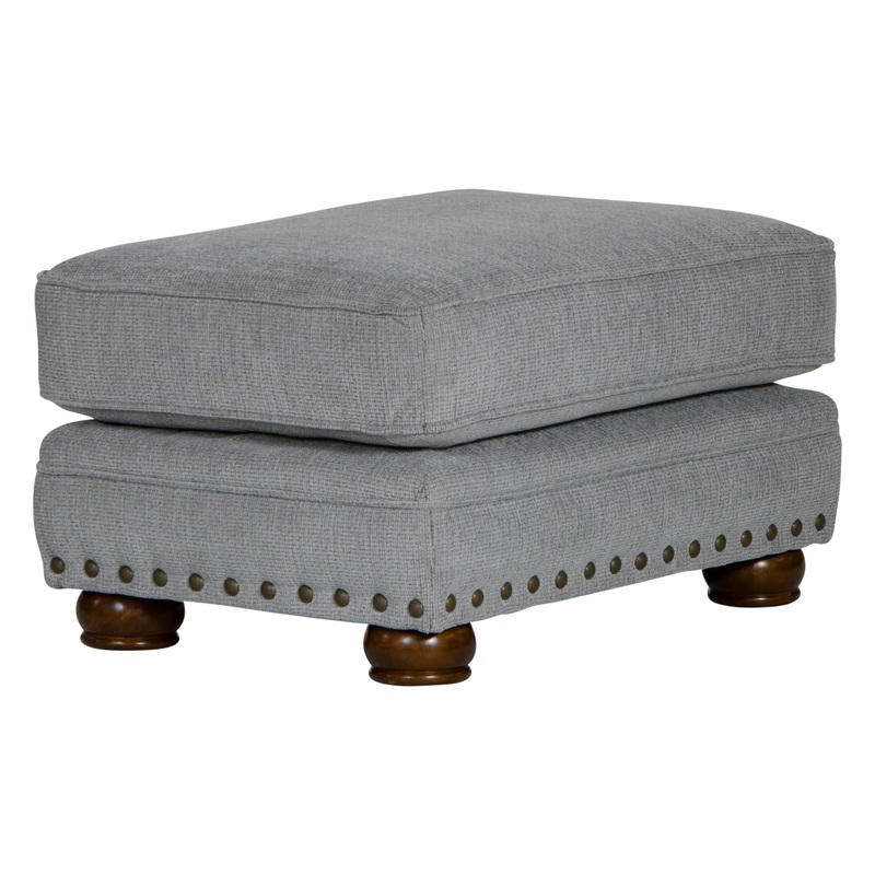 The Singletary Ottoman offers additional comfort for your living room. It features a padded pillow-top cushion, welting and nail heads accents, and wooden bun feet.