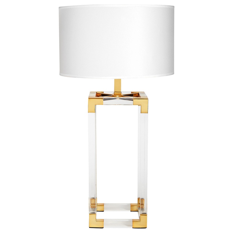 The perfect blend of simplicity and glamour, modern and traditional. Our Jacques Column Table Lamp features crystal clear framework with brushed brass corners topped with a silky white shade. Add some pop to your penthouse or some uptown swank to your loft