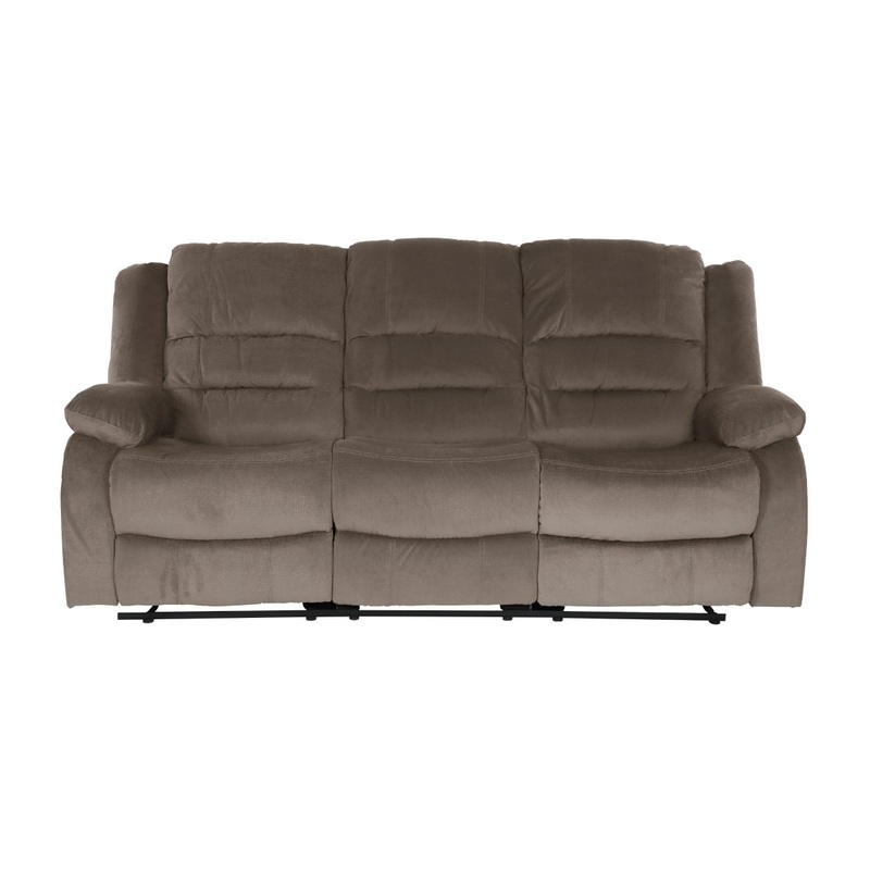 The classic transitional styling of the Jarita Collection creates a look that is perfect for your casual living space. Offered in chocolate microfiber, the double reclining sofa offers plush seats, backs and arms. With the pull of the manual reclining mech