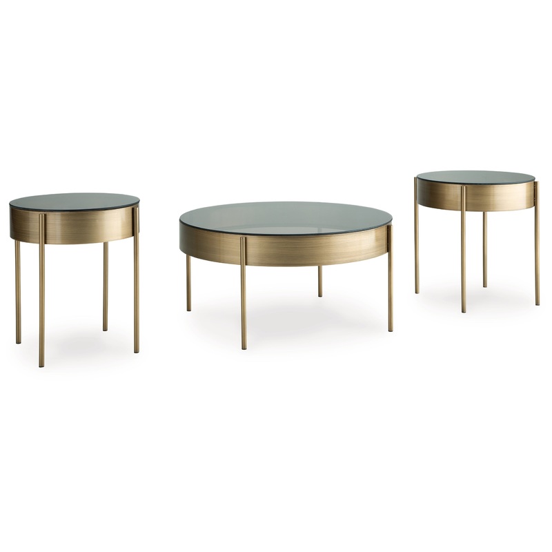 This table set combines metal and glass materials for a stylish and functional home accent. Tubular legs provide a sturdy base, while the aged brass-tone metal apron adds an elegant touch. A black tempered glass tabletop offers both sleek aesthetics and durability. With a modern design and high-quality craftsmanship, the set is a wonderful display of great taste.