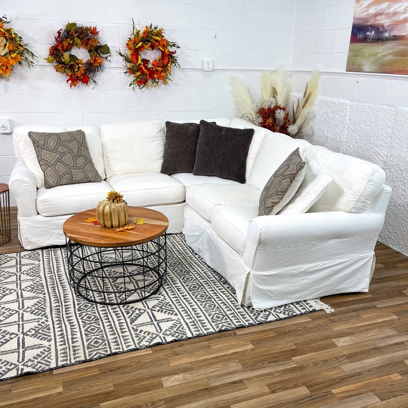 Jordan’s 2pc Slip Cover Sectional w/ Feather-down cushions
