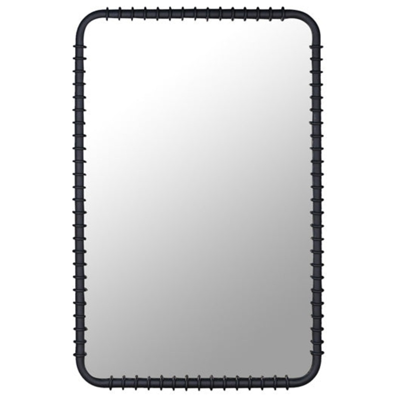 This accent mirror’s sleek black finish and ribbed design add a touch of contemporary chic to any room. Its versatile hanging options allow you to display it vertically or horizontally, making it easy to complement your existing decor. The clean lines and simple shape create a modern and minimalist feel, while the substantial frame adds a touch of boldness.