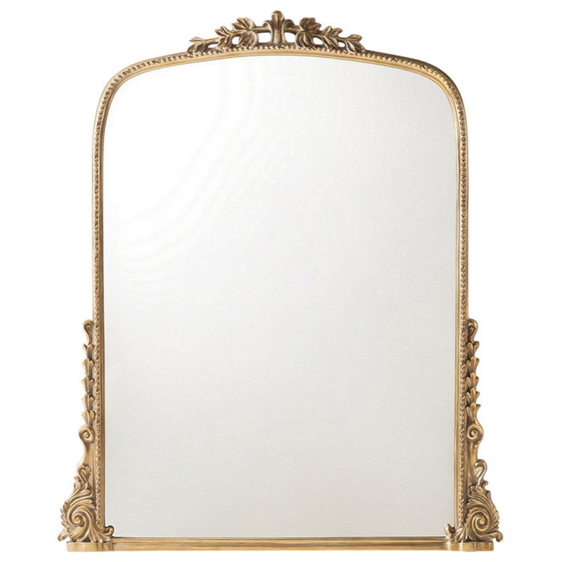 A full-length mirror in a thin golden frame that is slightly arched with an elegant crown at the top. Model # (MPN)EST12009RSProduct ID199057774Manufactured ByZentique, Inc.Sold ByHouzzSize/WeightW 50.5" / D 2.5" / H 61" / 86 lb.Assembly RequiredNoCategory