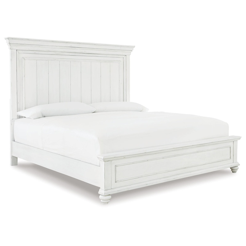 Give your retreat vintage charm with this California king panel bed. In a beautifully distressed whitewash finish, you'll love the headboard's grand style featuring a picture framed panel. Generously scaled moulding from top to bottom, along with bun feet