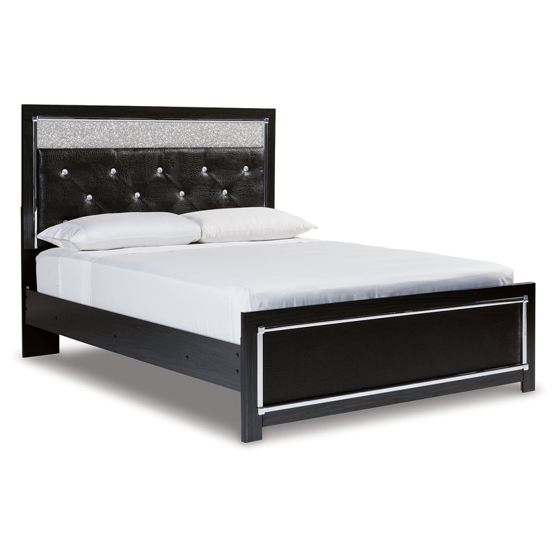 Rest easy. The luxurious look youve been dreaming of is yours for the taking, at a price sure to put you at ease. This queen upholstered panel bed brings a sense of old Hollywood with a contemporary flair. A deep, dark finish, faceted chrome-tone accents and LED lighting exude Hollywood-chic style to the max. Padded windowpane stitching on the sleek black upholstery infuses a sumptuous look thats upscale and indulgent, and utterly on trend. A wireless remote allows you to control the color and brightness to suit the mood.