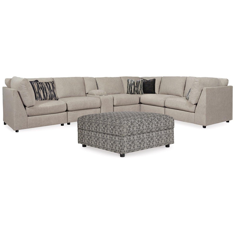 With its casual-contemporary aesthetic and modular design that simply makes sense, this sectional and ottoman make way for high style and indulgent comfort. Rest assured, the thickly cushioned storage console includes not only a pair of cup holders, but al
