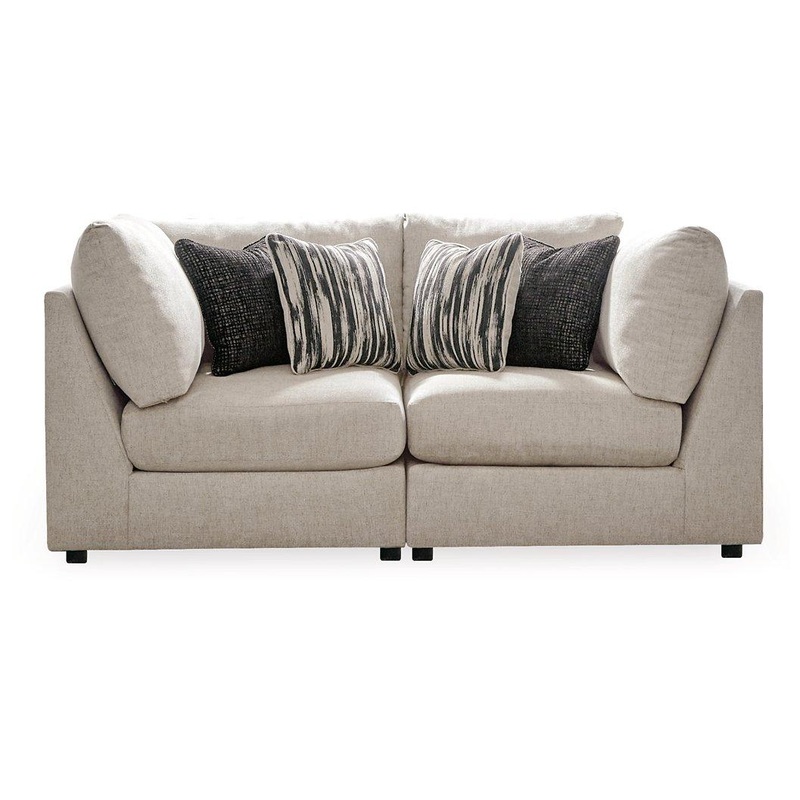 With its casual-contemporary aesthetic and modular design, the Kellway sectional makes way for high style and indulgent comfort. Rest assured, the thickly cushioned storage console includes not only a pair of cup holders, but also a USB port to keep you powered up while you unplug. Wedge-cut armrests are right on point for those who fancy a clean, modern look. Plush-to-the-touch chenille-feel upholstery in bisque beige is pure delight.