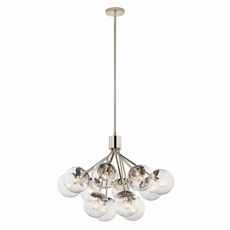 Inspired by frozen grapes, the Silvarious convertible chandelier will capture the hearts of family and friends. Gathered at the center, its arms branch out with sparkling globes at the end, for a simple, yet playful design. Its clear glass beautifully illuminates against its polished nickel finish.