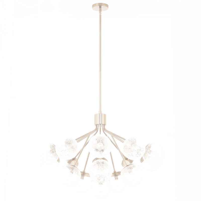Inspired by frozen grapes, the Silvarious convertible chandelier will capture the hearts of family and friends. Gathered at the center, its arms branch out with sparkling globes at the end, for a simple, yet playful design. Its crackled glass provides unique light play against its champagne bronze finish. Install as a semi flush mount or pendant. As a semi-flush, the glass will deliver a beautiful light effect on the ceiling and walls.