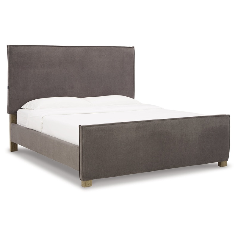 With a contemporary silhouette and downtown flair, this queen upholstered panel bed seamlessly fits in with existing modern decor. Its clean-lined profile and tailored slate gray upholstery give an urban sophistication. This chic bed also features a double
