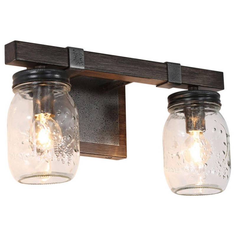 LALUZ 13-in Black Mason Jar and Grayish Brown Farmhouse Vanity Lighting – Eclectic – Bathroom Vanity Lighting – by lnclighting.llc