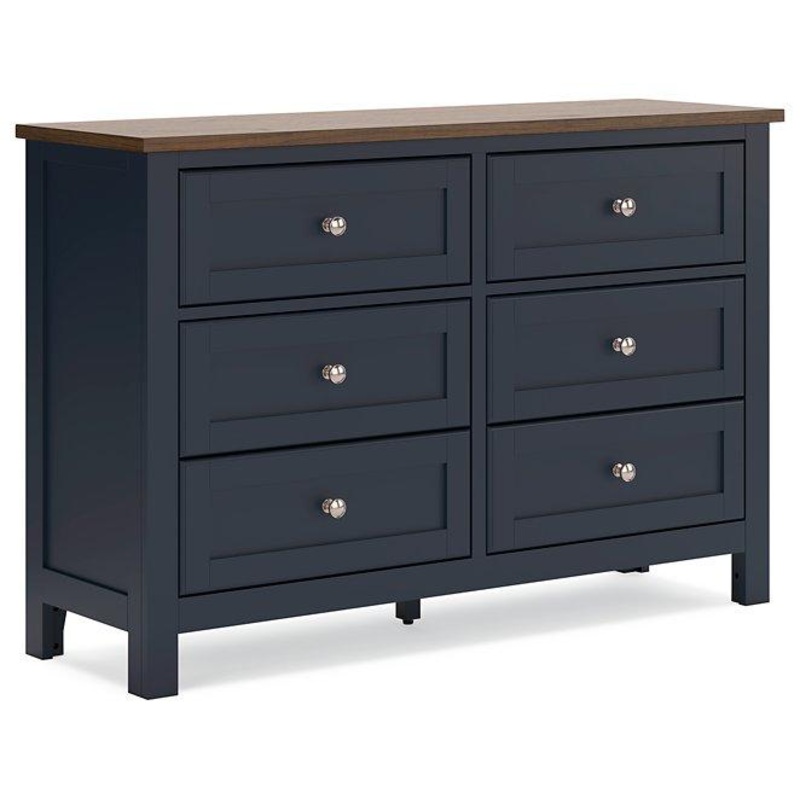 Add homespun charm to your restful retreat. A modern take on a timeless silhouette, this dresser pairs a dark slate blue finish with a light brown top. Drawer fronts and legs in a classic Shaker style bring an air of beautiful simplicity to the bedroom. Whether it’s part of a charmingly curated guest suite or a casually carefree kids room, this dresser is a welcome addition.