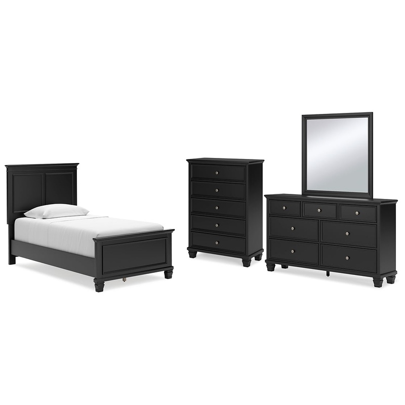 Lanolee Twin Panel Bed with Mirrored Dresser and Chest