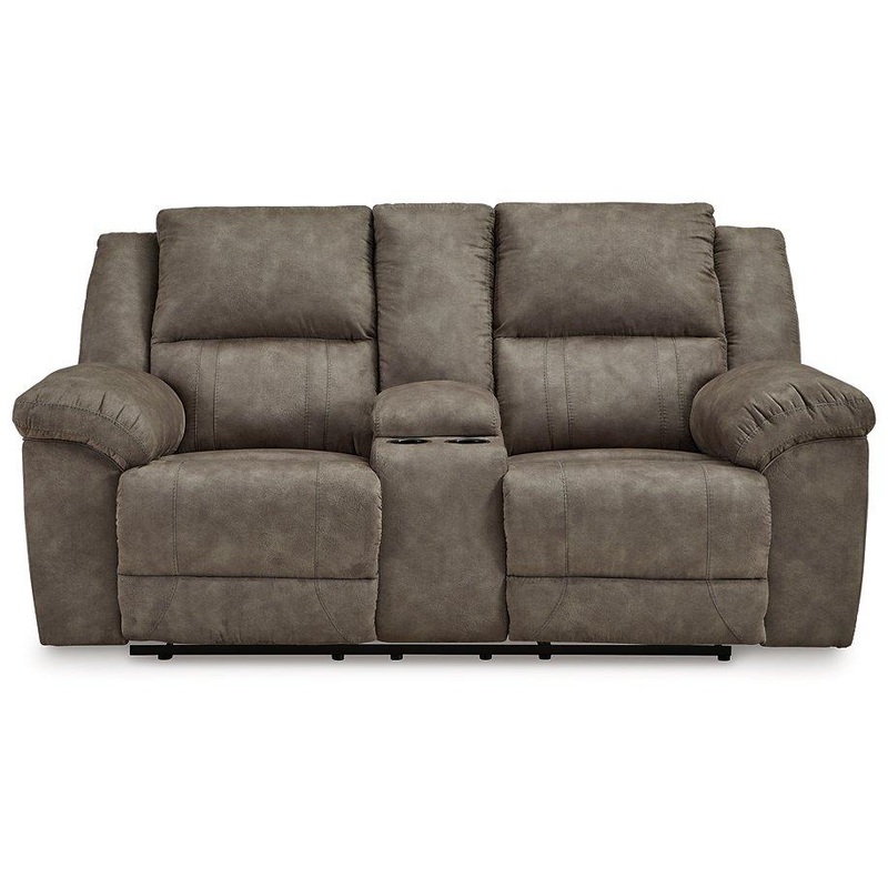 Is being too comfortable even possible? Its worth finding out in this reclining loveseat with console. Wrapped in the plushest of neutral faux leather upholstery, it's perfectly cushioned in all the right places. We love the loveseat's super-wide seating,