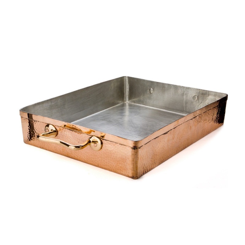 Superior Construction: Crafted from durable hand-hammered copper, our spacious roasting pan provides you with ample cooking area for preparing delicious meals. The double-layer tin interior lining, applied by hand by our copper smiths, ensures exceptional durability and performance, even with constant use.