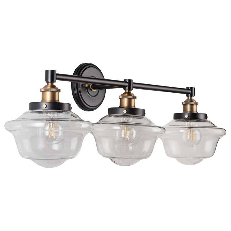 Lavagna 3 Light Schoolhouse Wall Sconce – Traditional – Bathroom Vanity Lighting – by Linea di Liara-LL-WL273-CLEAR-AB