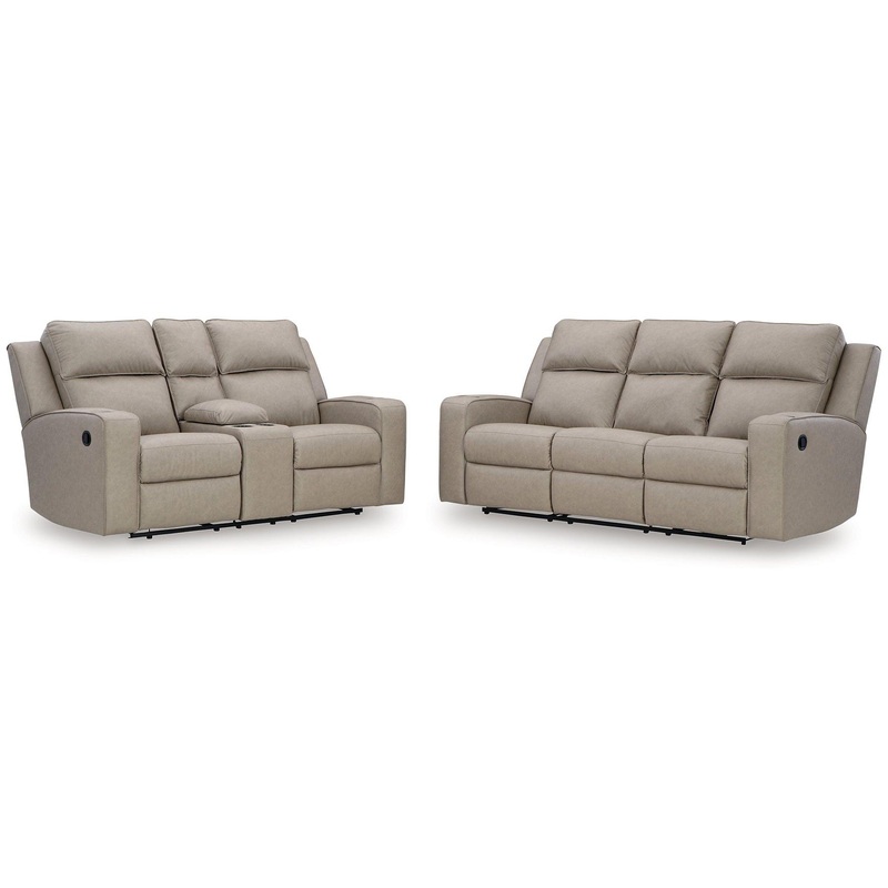 Indulge your lust for comfort and love for contemporary design with the Lavenhorne seating package. Made for easy everyday living, the set is upholstered in a heavyweight padded faux leather and accented with contrast jumbo stitching for fashion-forward flair. Sleek track arms elevate the look with a touch of modern sensibility.