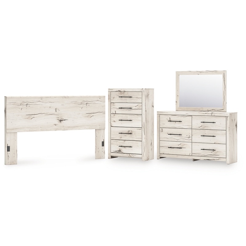 Lawroy King Panel Headboard with Mirrored Dresser and Chest
