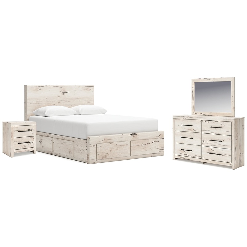 Lawroy King Panel Storage Bed with Mirrored Dresser and Nightstand