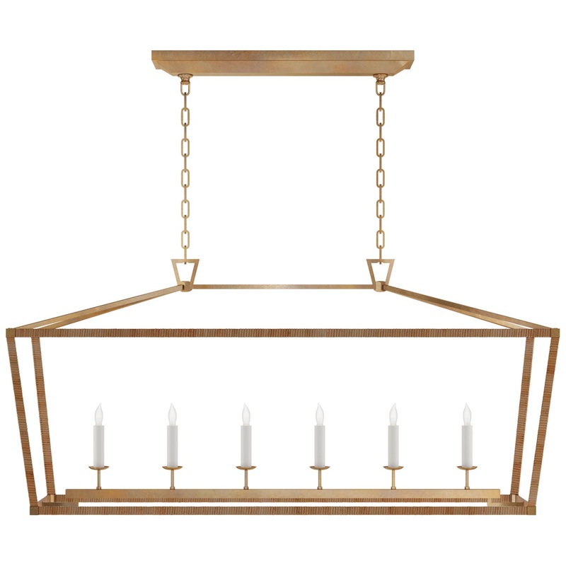 LED Linear Pendant from the Darlana Wrapped Collection in Antique-Burnished Brass And Natural Rattan Finish by Visual Comfort Signature