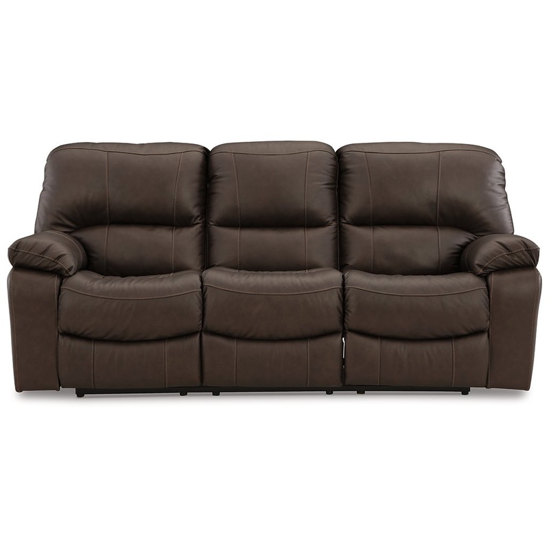 - Genuine leather typically covers inside areas such as the back, seat and arm cushions; skillfully matched faux leather covers the remaining areas