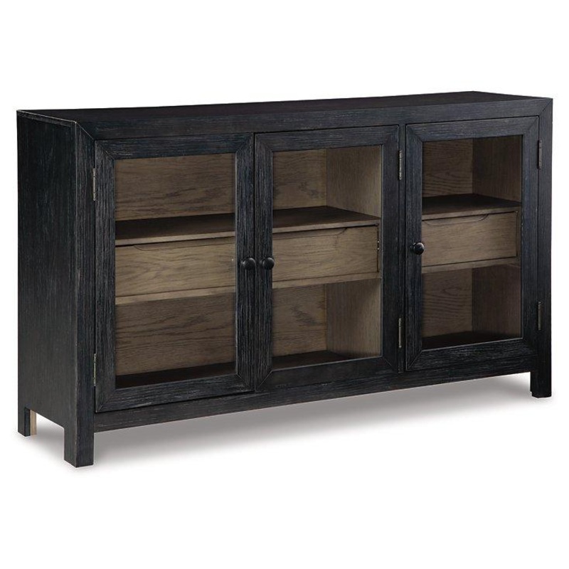 Add layers of form and function to your space with this accent cabinet. It's draped in a black finish on the outside and a warm gray finish inside, for a classic look that seamlessly transitions from casual to modern styles. This accent cabinet's flexible