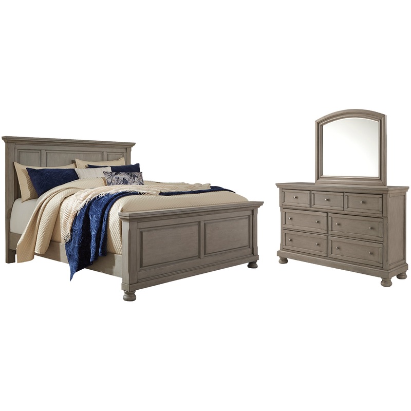 Lettner California King Panel Bed with Mirrored Dresser