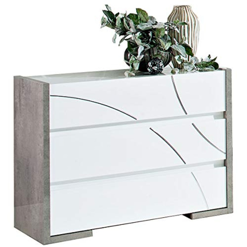 Letto Facile MF Cassettiera Milano Frontale Bianco Lucido e Cassa Marmo Lucido 3 cassetti, 77 x 103 x 45 cm