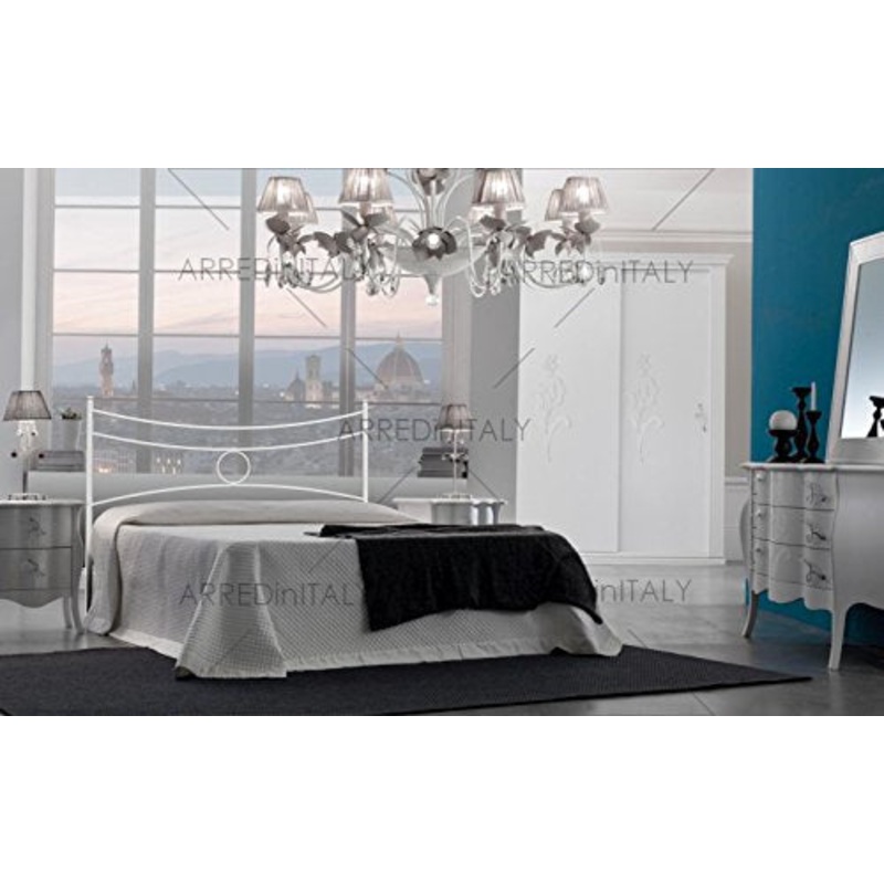 Letto Matrimoniale in Ferro Colore Bianco con GIROLETTO PREDISPOSTO per Rete con Piedini 160 X 190 CM. Non Inclusa – Prodotto Made in Italy – ARR031