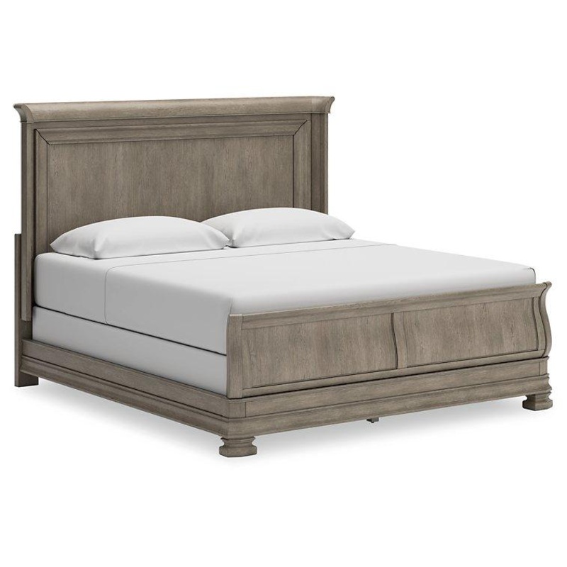 Traditional design motifs, redefined for todays trends. Inspired by timeless Louis Philippe styling, this California king sleigh bed is distinguished by its stunning attention to detail. Youll find the light gray finish encourages an attitude of laid-back luxury. Complete with a thick profiled base and shelter wings, it reigns over your bedroom with an air of casual elegance.